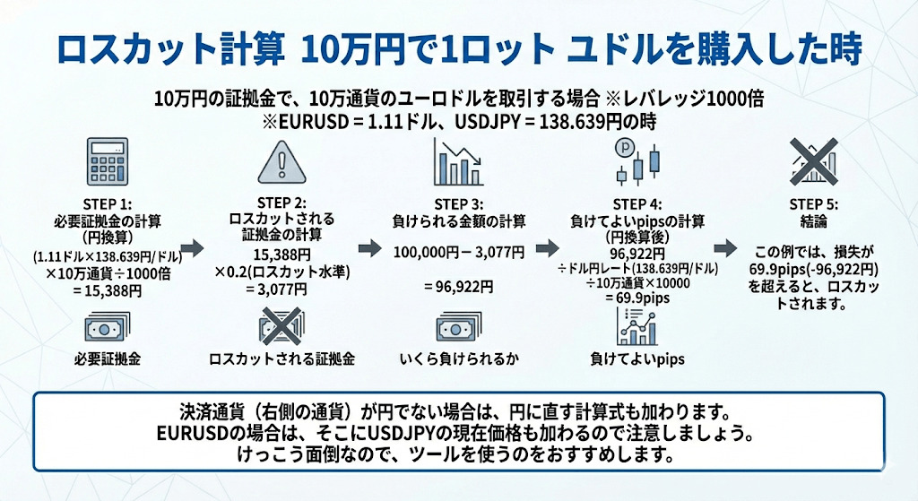 ロスカット計算 10万円で1ロット ユーロドルを購入した時