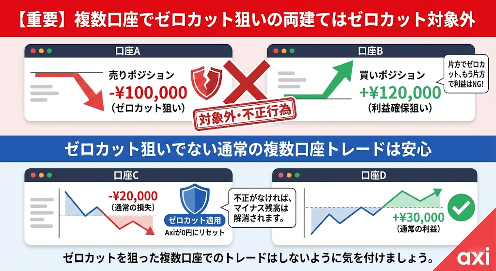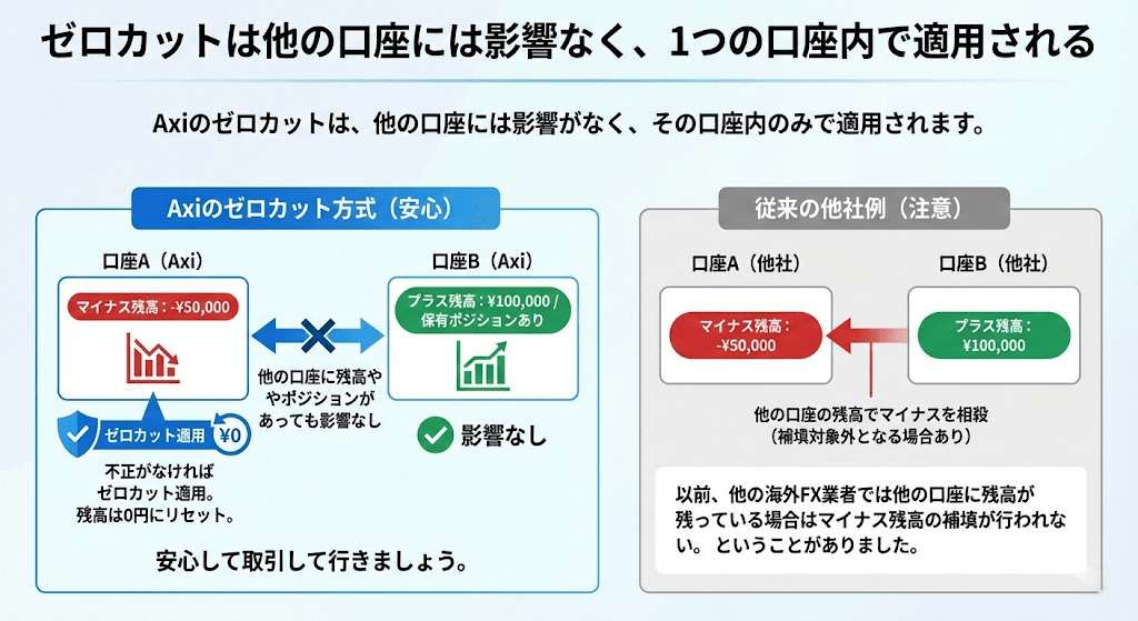 Axiのゼロカットは、他の口座には影響がなく、その口座内のみで適用されます。