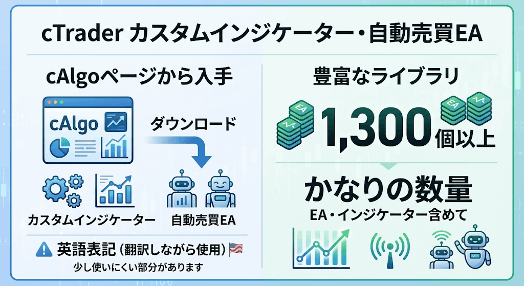 cTraderではcAlgoのページからカスタムインジケーターやEAをダウンロードすることができます。