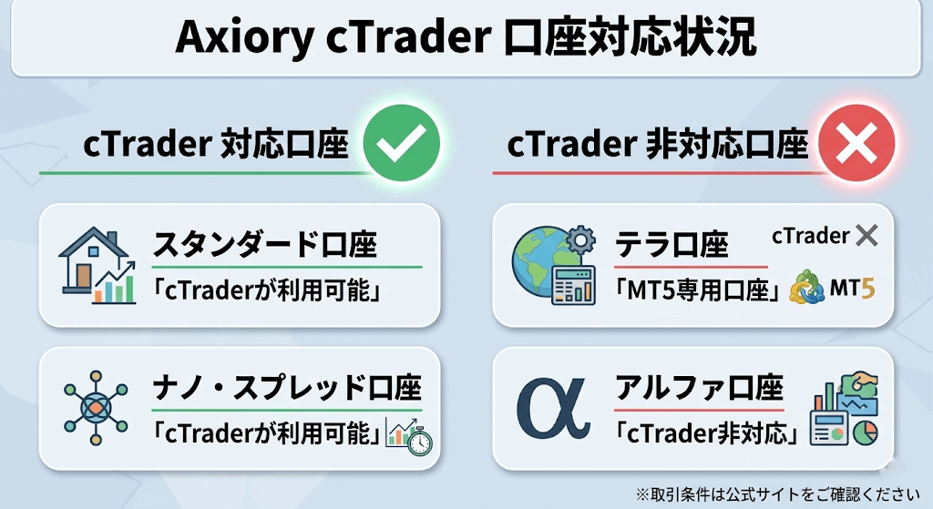 cTraderはスタンダード口座とナノスプレッド口座に対応