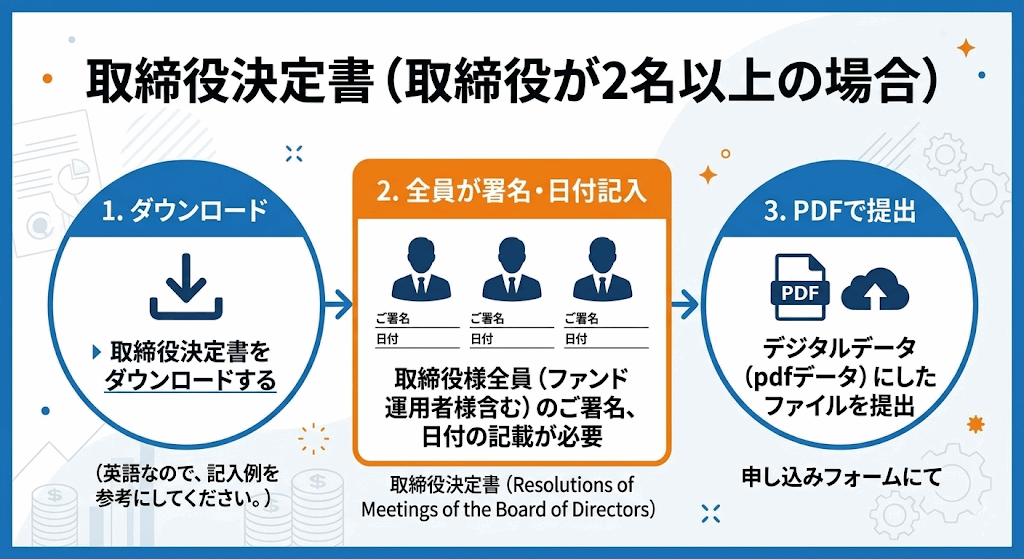 取締役が2名以上いる場合は、取締役決定書の提出が必要になります。
