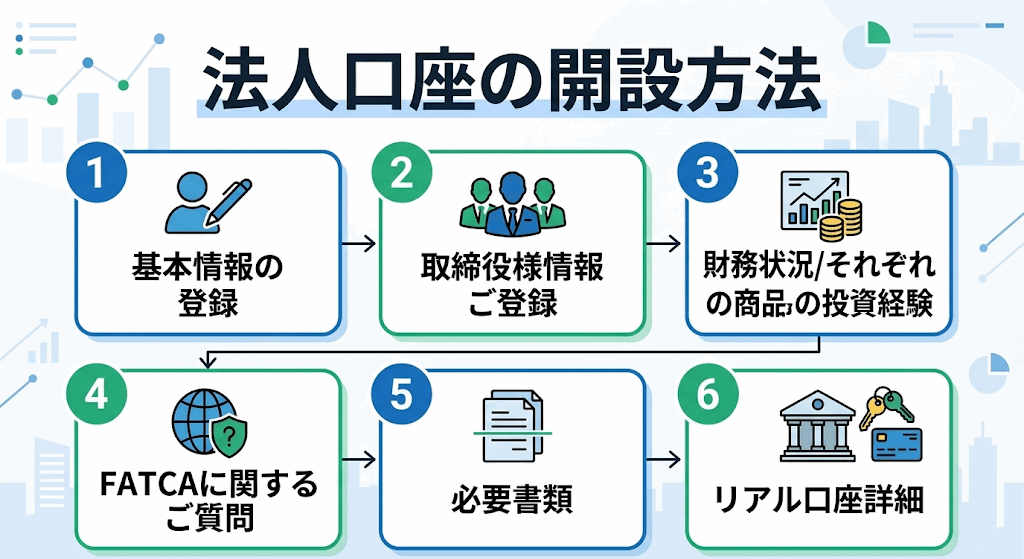 | 必要書類 | 【代表者】本人確認書類,現住所確認書類 法人確認書類,株主名簿,法人住所確認書類,取締役決定書(取締役2名以上の場合) |