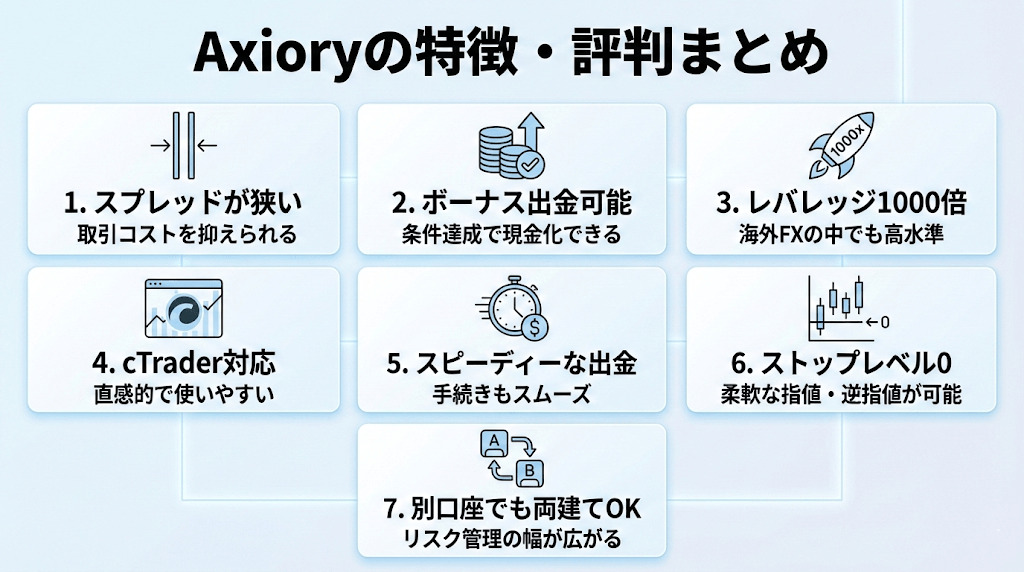 まずAxioryの特徴やメリットについて紹介して行きます。