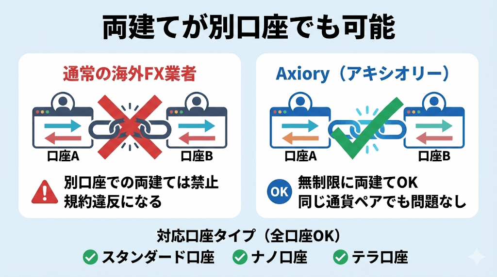 Axioryはどの口座でも両建てOK