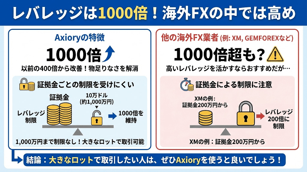 Axioryのレバレッジは400倍から1000倍に変更となり、これまでの物足りなさを改善しました。
