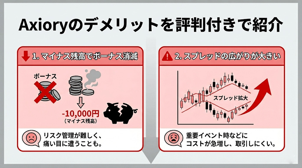 続いて、Axioryのデメリットも紹介して行きます。