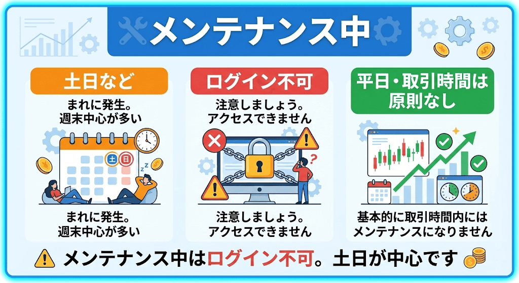 基本的に取引時間内にメンテナンスになることはないため、土日になります。