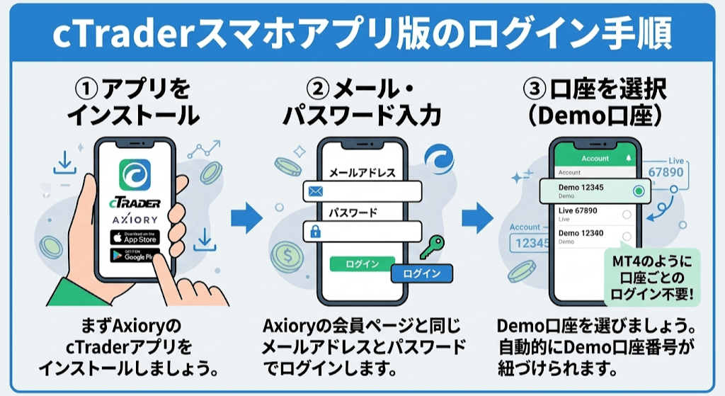 cTraderのスマホアプリ版のログイン
