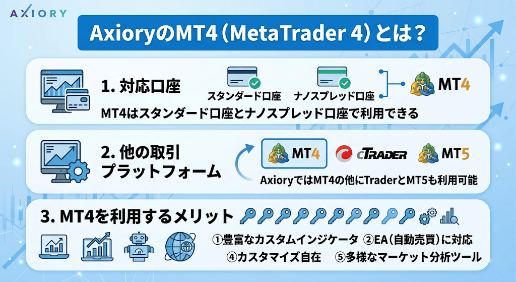 Axioryの取引プラットフォームは3種類ありますが、迷ったらとりあえずMT4にしておきましょう。