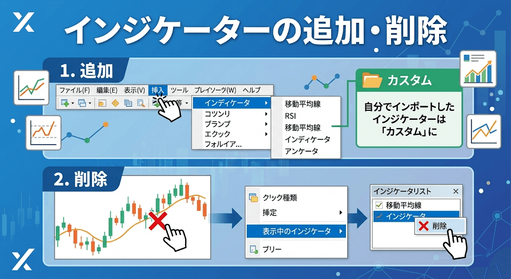 自分でインポートしたインジケーターは「カスタム」の部分に入ります。