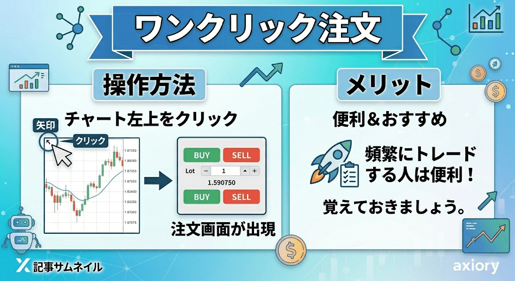 チャート左上にある矢印をクリックするとワンクリック注文の画面が出てきます。