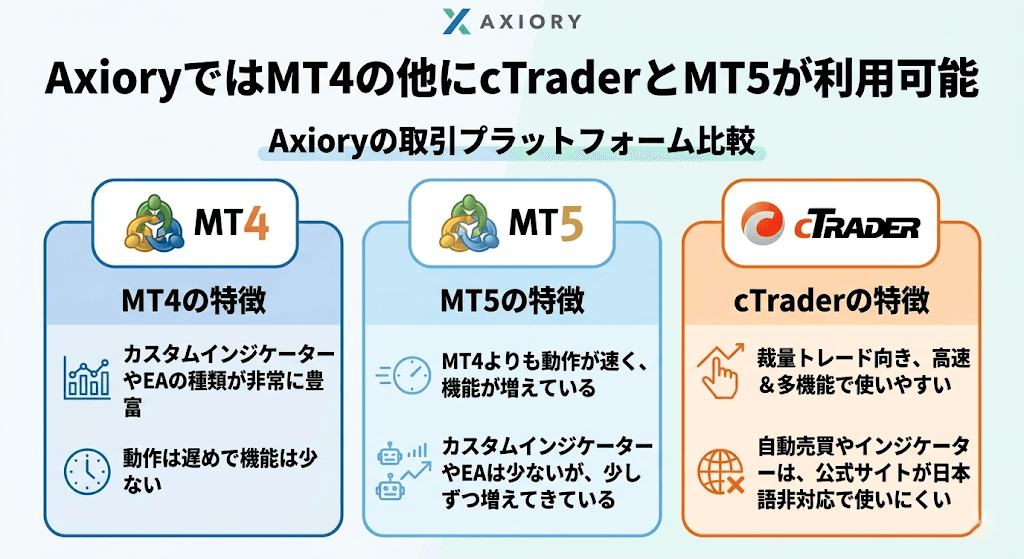 AxioryではMT4の他にcTraderとMT5が利用可能