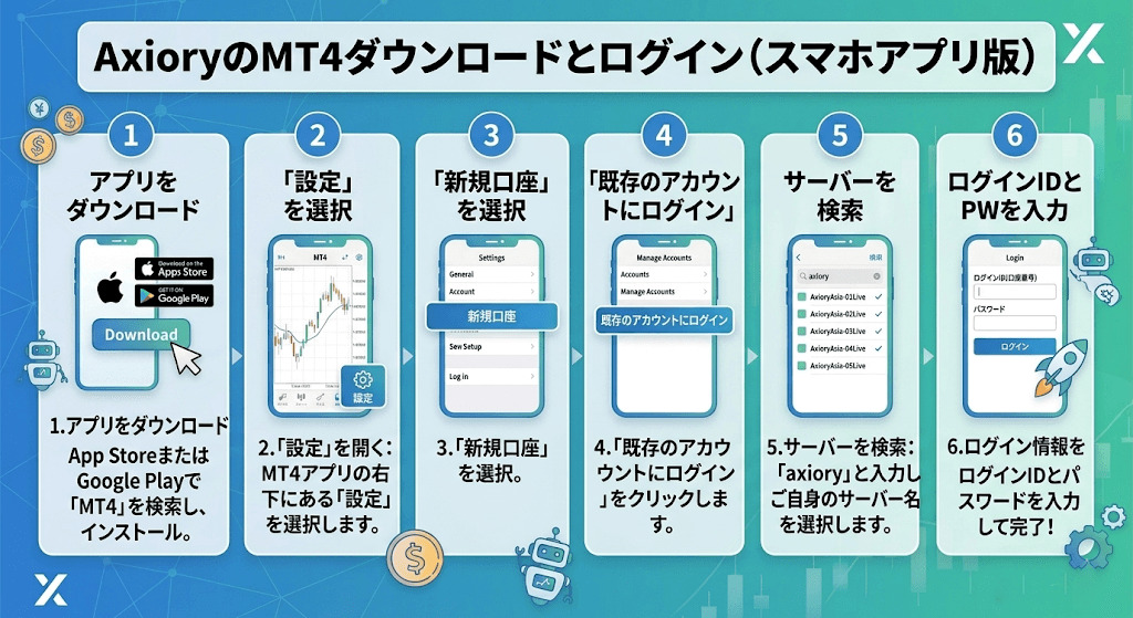 AxioryのMT4のインストールとログイン(スマホアプリ)
