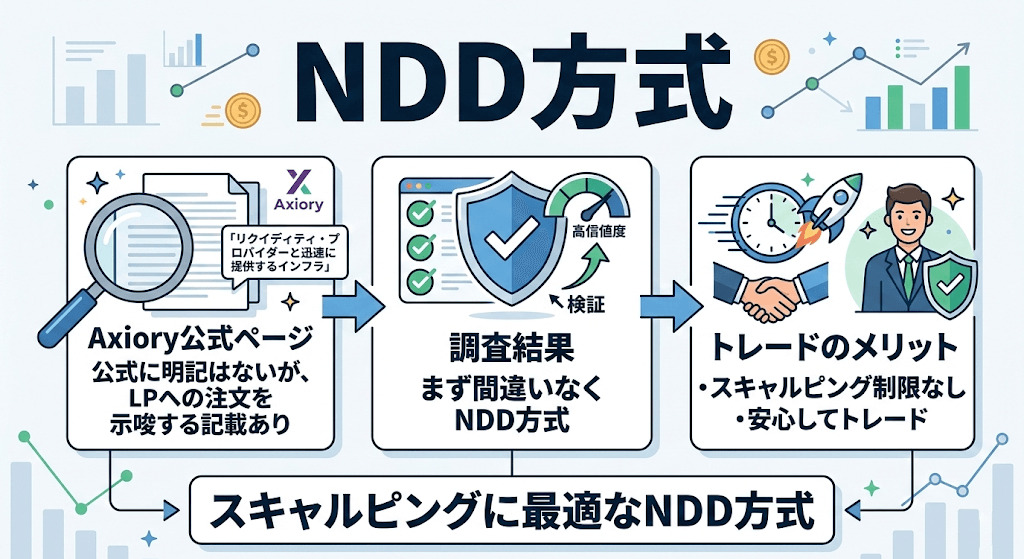 Axioryの公式サイトを見ると、NDD方式かどうかの記載はありませんでした。