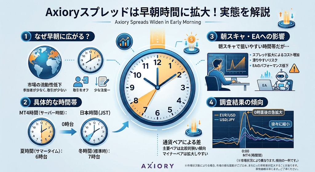 Axioryのスプレッドは早朝時間に広がる