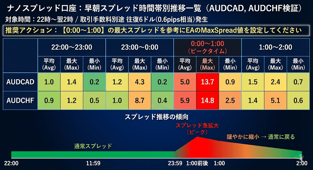 22時~2時の早朝スプレッドは0時台のスプレッドを見てEAのMaxSpreadの設定をして行くのがおすすめです。