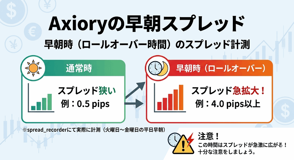 Axioryの早朝時(ロールオーバー時間)のスプレッドを紹介します。