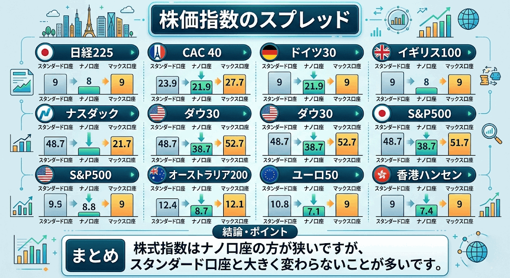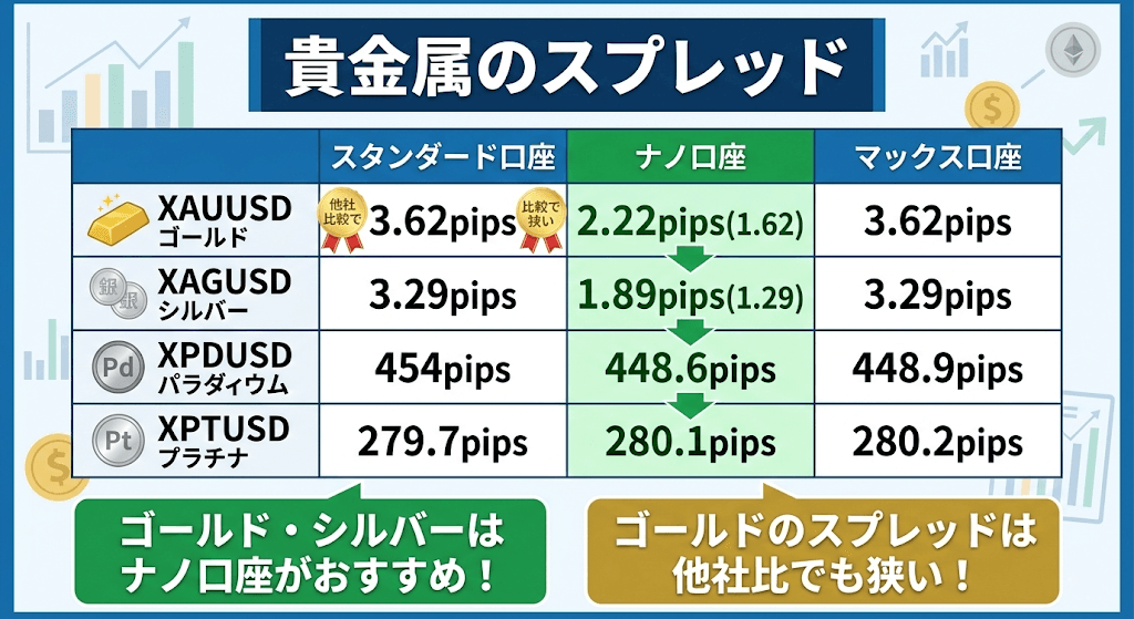 スタンダード口座やナノ口座、テラ口座のスプレッドも公開しています。