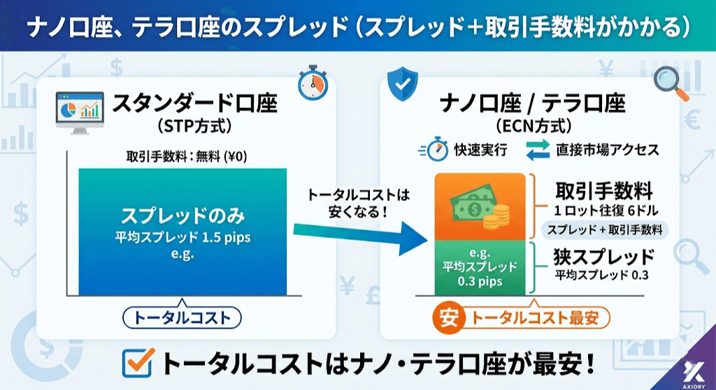 ナノ口座、テラ口座のスプレッド(スプレッド+取引手数料がかかる)