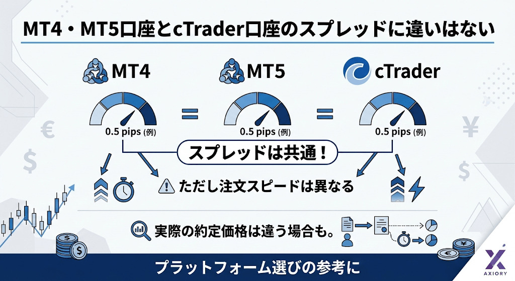 MT4・MT5口座とcTrader口座のスプレッドに違いはない