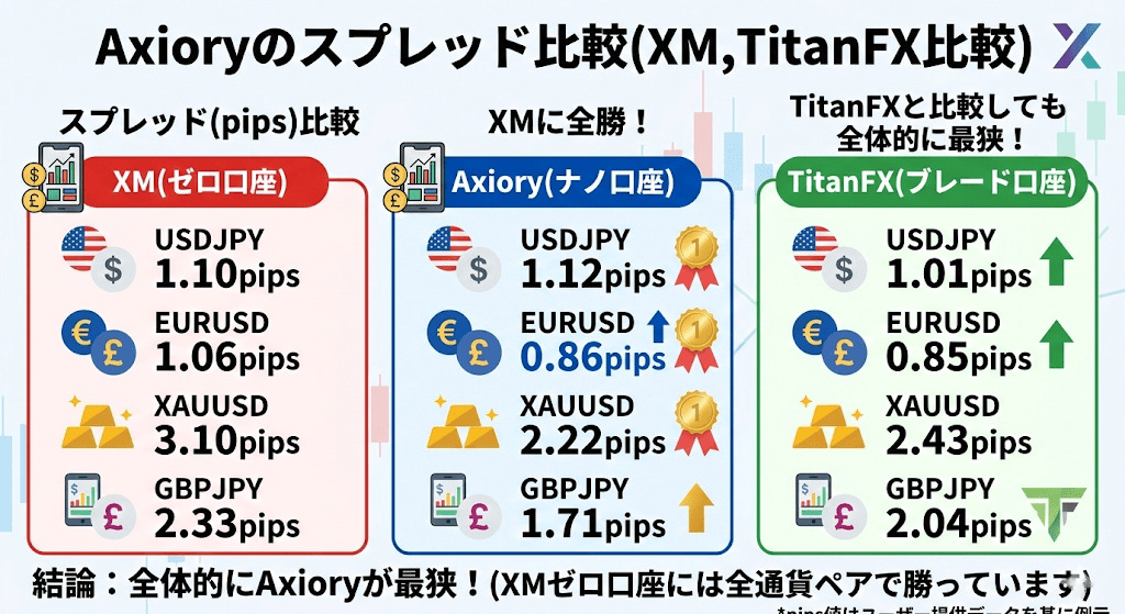 Axioryのスプレッド比較(XM,TitanFX比較)