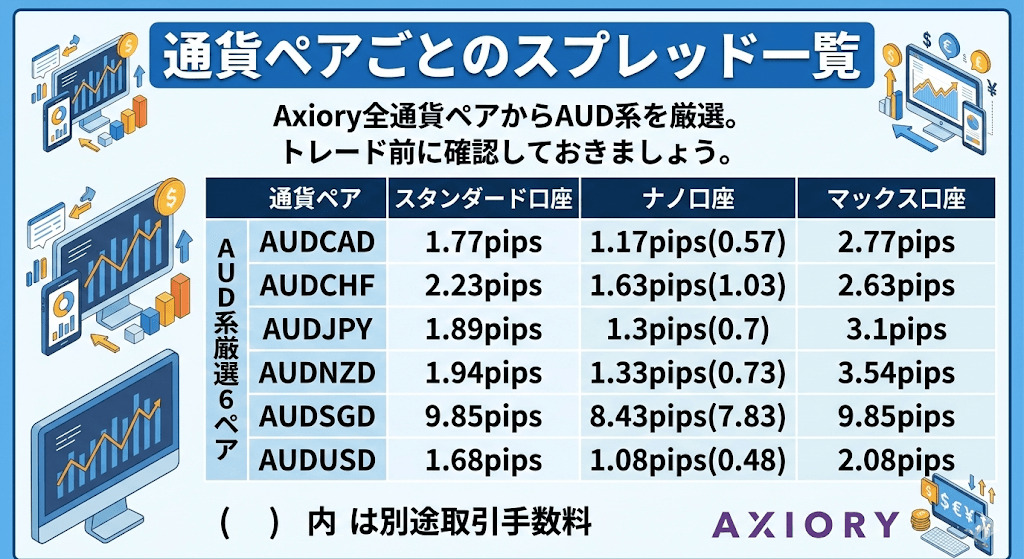 Axioryの全通貨ペアのスプレッドを調査したので紹介して行きます。