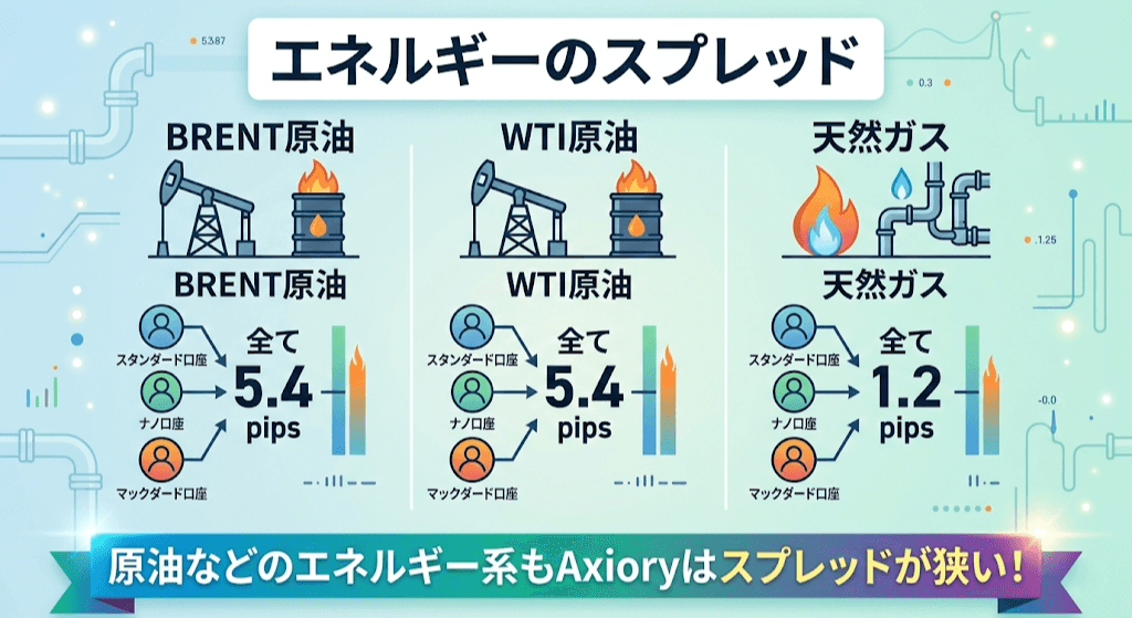 Axioryのスプレッドは全体的に狭く、時には0.0pipsの時もあります。