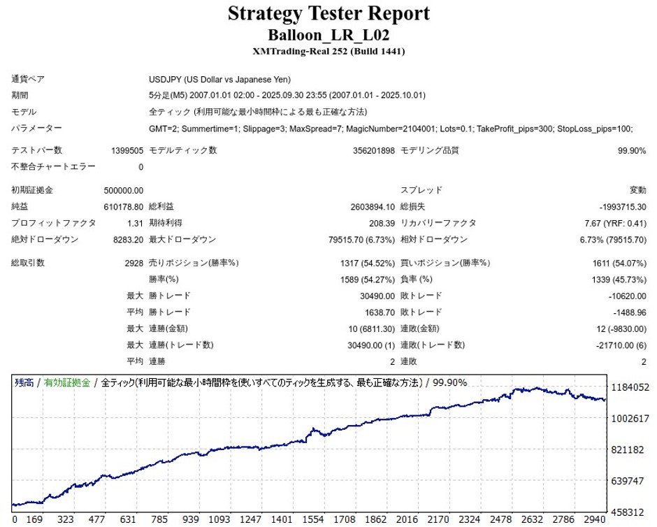Balloon_LRは2つのロジックからなるドル円EAですが、成績はどうなのでしょうか。