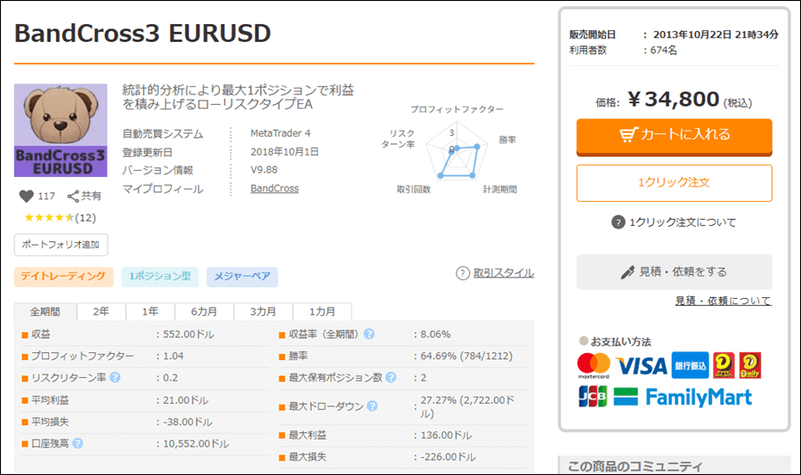 BandCrossさんはBandCross3 EURUSD以外のEAは出品されていないようです。