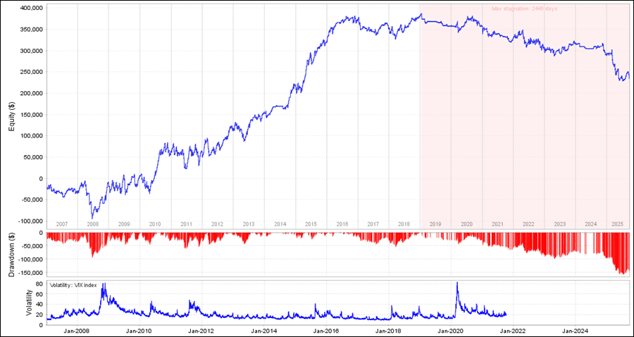 • BandCross3 EURUSDをQuantAnalyzerで見てみると、2017年から停滞しています。