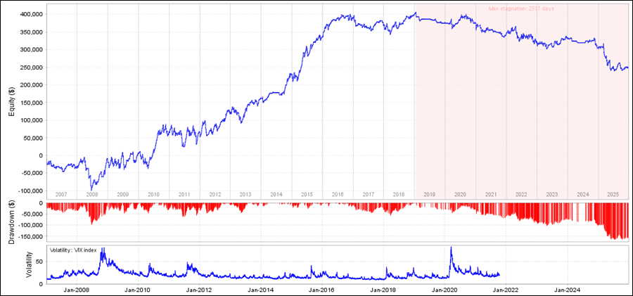 BandCross3 EURUSDをQuantAnalyzerで見てみると、2017年から停滞しています。