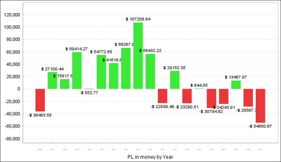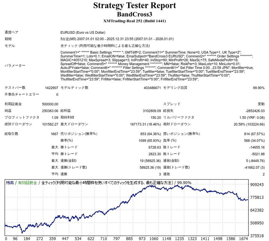 BandCross3 EURUSDは過去18年で+25万円の収益でした。