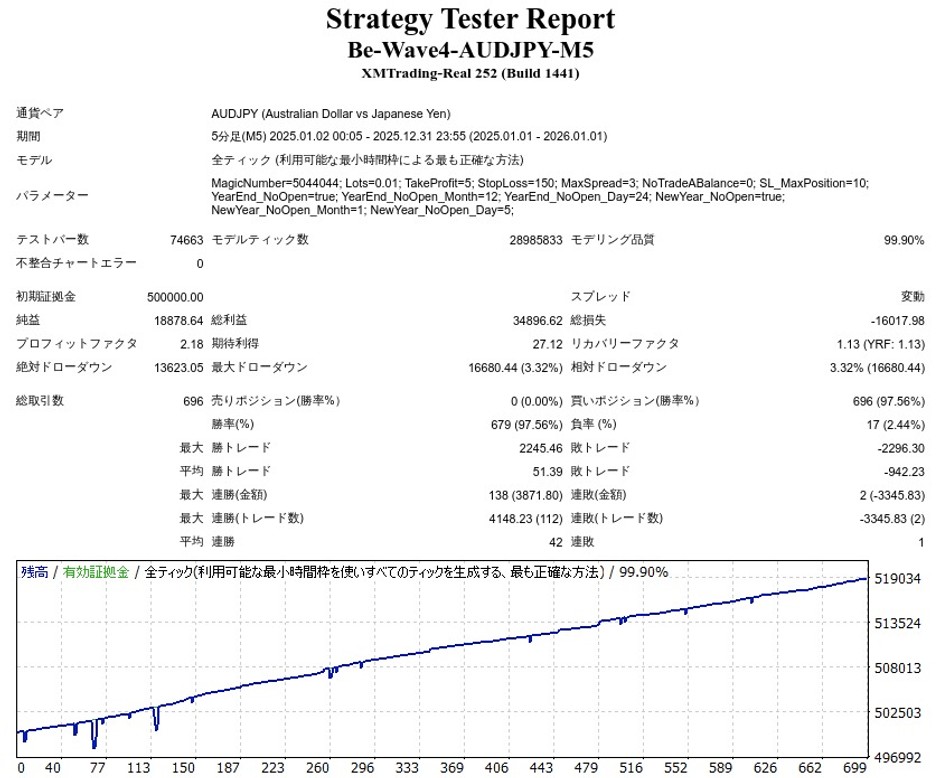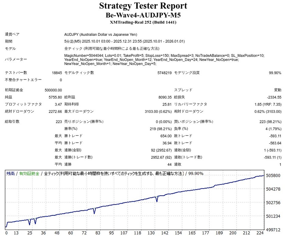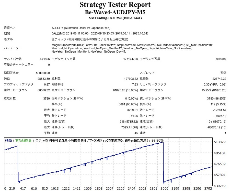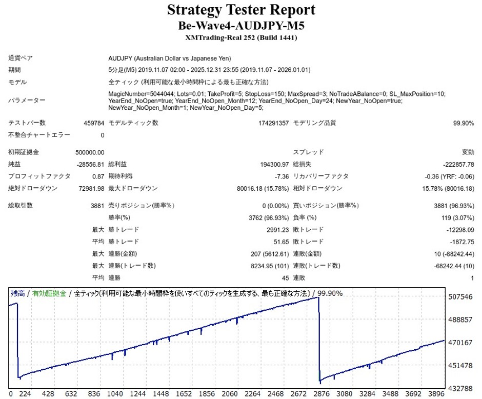 Be Wave 4 -AUDJPY M5-のEA検証結果