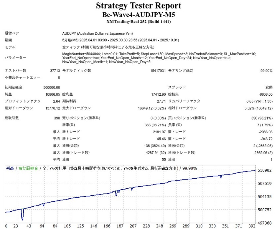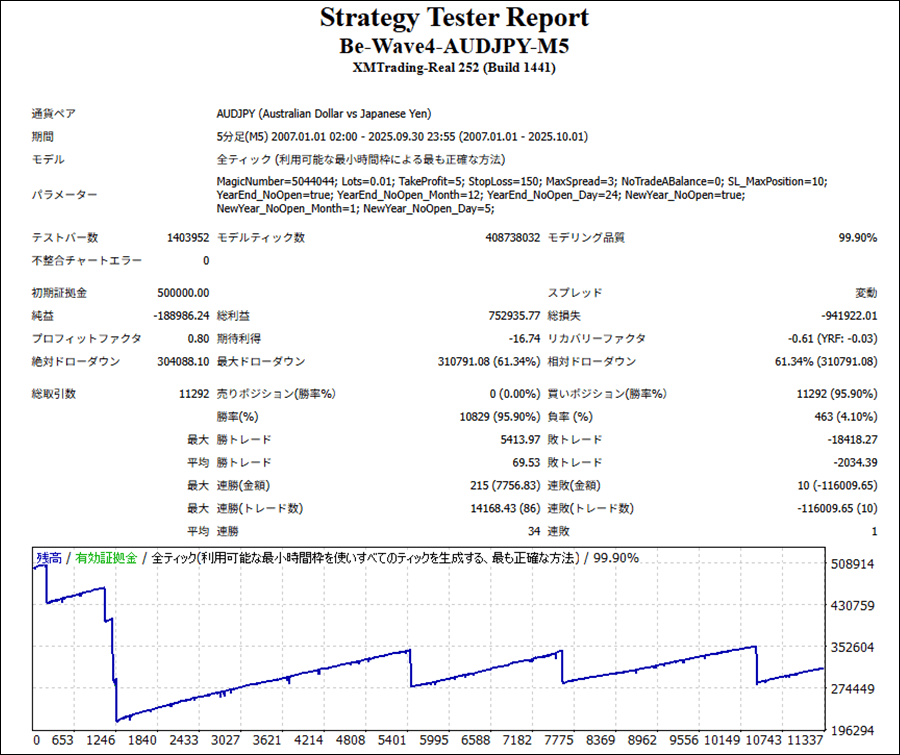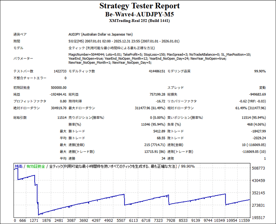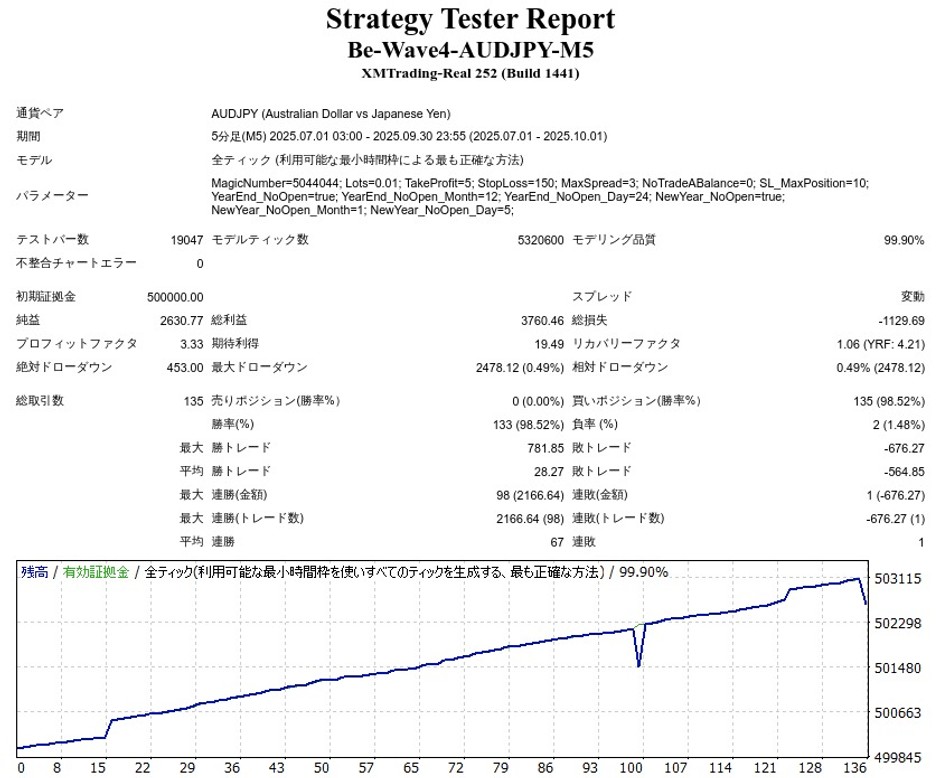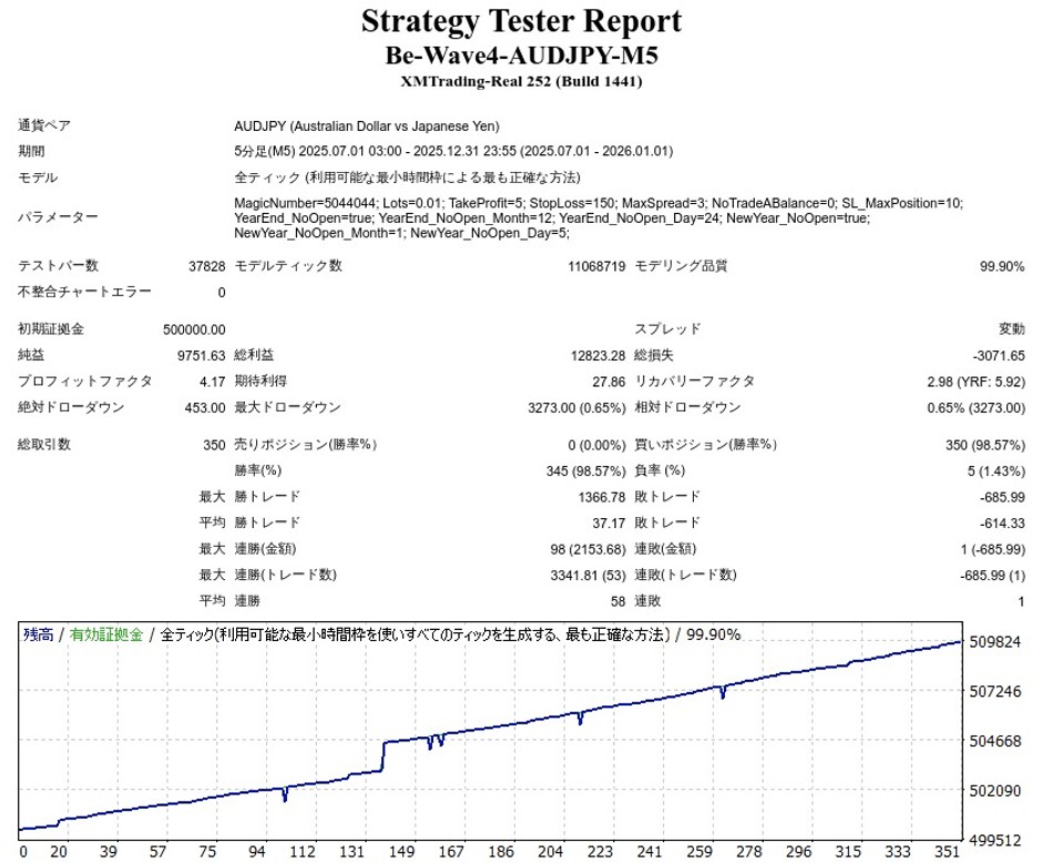 Be Wave 4 -AUDJPY M5-のEA検証結果