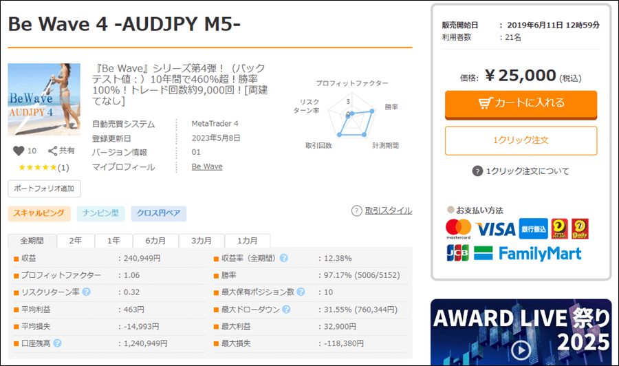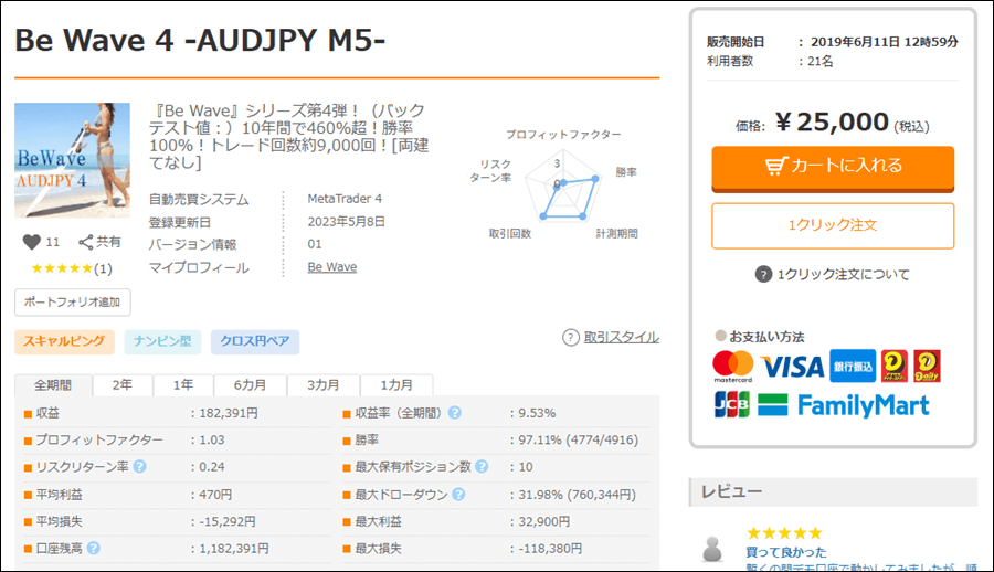 Be Wave 4 -AUDJPY M5-はナンピンタイプのEAですが、成績はどうなのでしょうか。