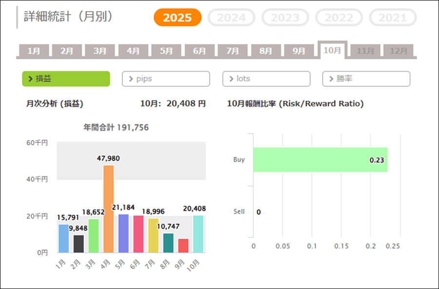 2022年~2025年9月の月間成績をまとめるとこのようになり、+1.2万円の成績となりました。