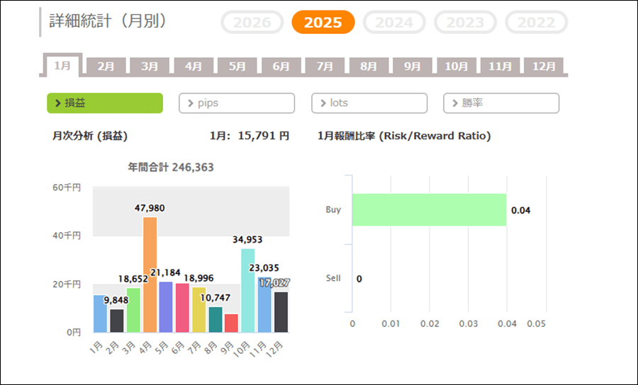 2022年~2025年12月の月間成績をまとめるとこのようになり、+1.7万円の成績となりました。