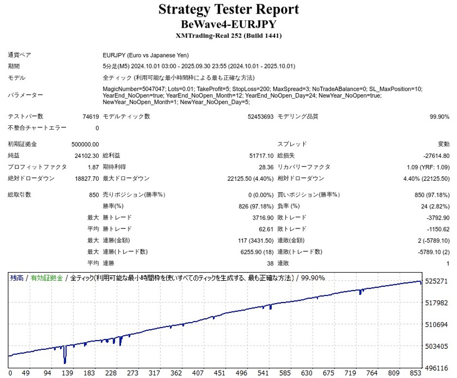 Be Wave 4 -EURJPY M5-のEA検証結果