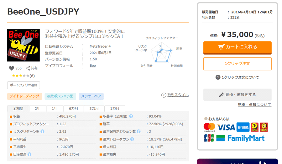 BeeさんはBeeOne_USDJPY以外にもEAをリリースしています。