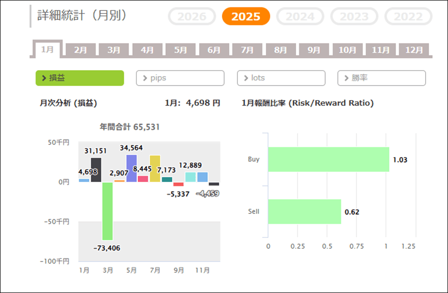 月次分析を見ると、2025年はトータルでプラスです。
