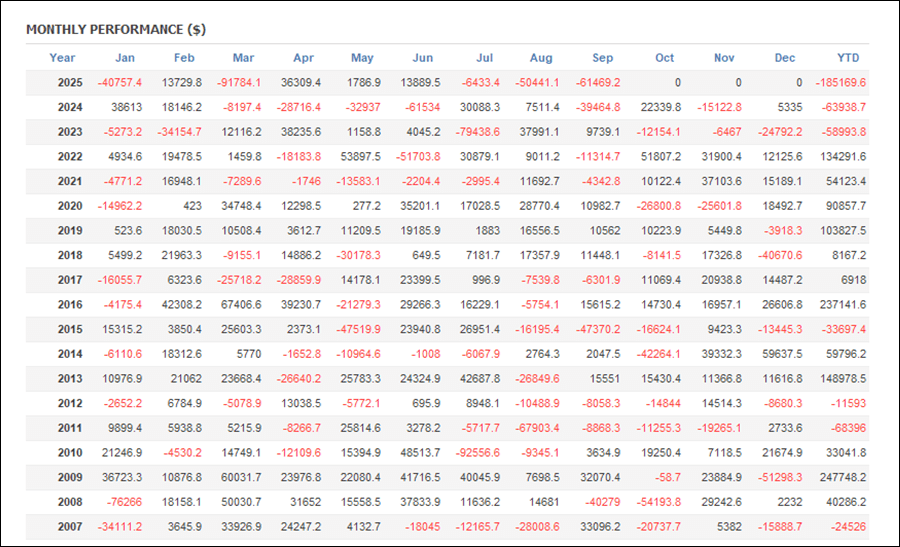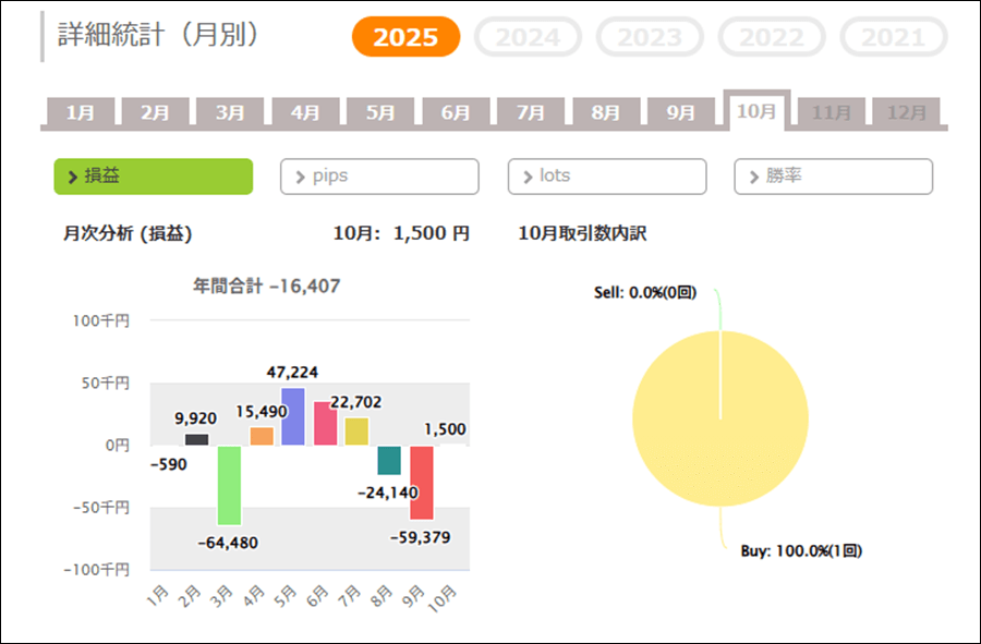 月次分析を見ると、2025年は今のところトータルでマイナスです。