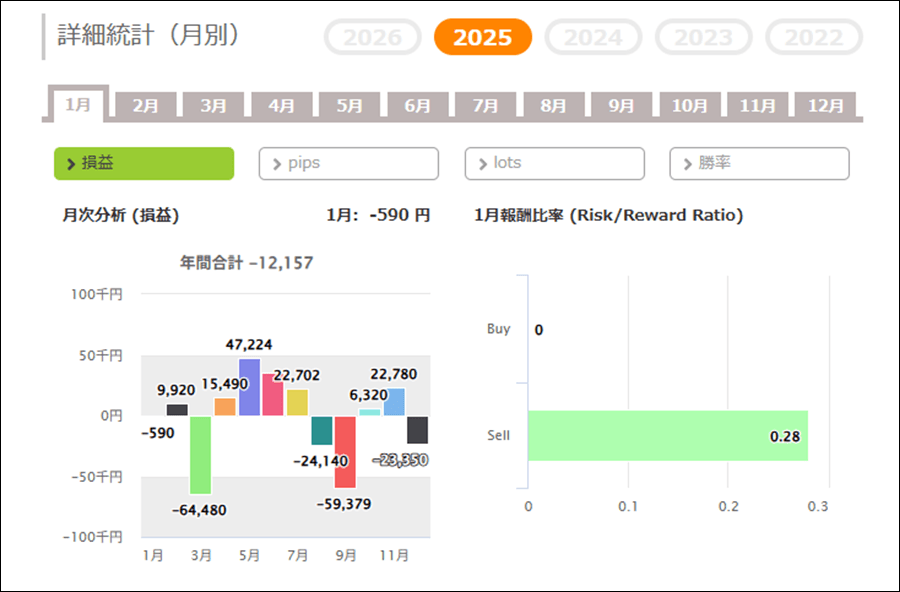 | 平均損失 | -2,784円 | 最大損失 | -9,010円 |