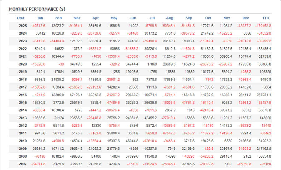 2023年はマイナスの月が多く、トータルでマイナスです。