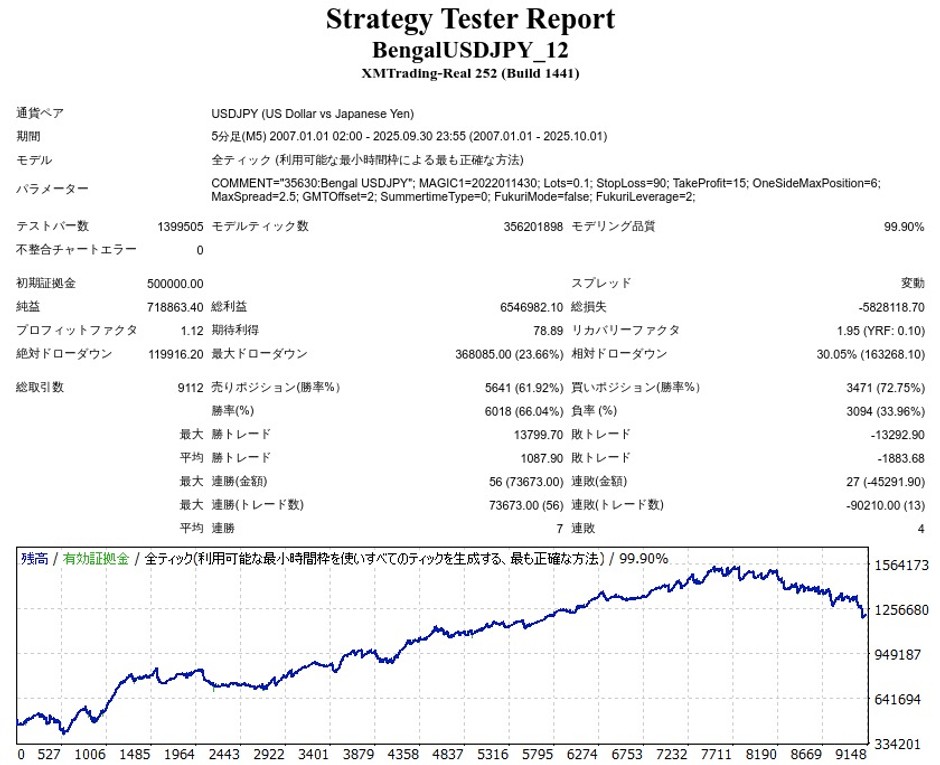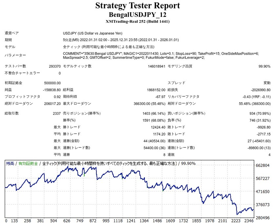 ベンガル USDJPYはドル円の最大6ポジ朝スキャEAですが、成績はどうなのでしょうか。