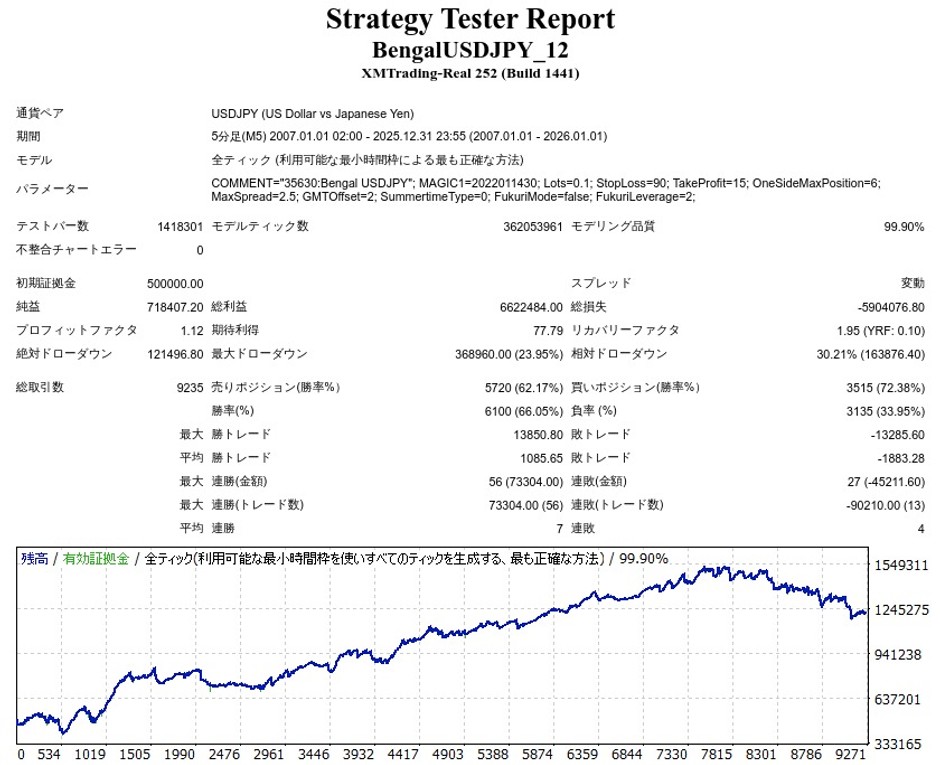 | 初期証拠金 | 500,000円 | 勝率 | 66.05% |