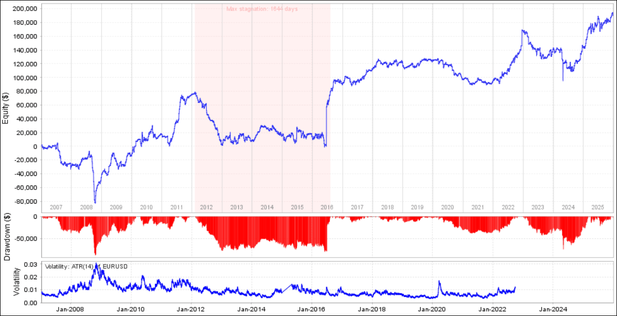 BlazeForce_CHFJPY_M5をQuantAnalyzerで見てみると、2012年~2016年が停滞しています。