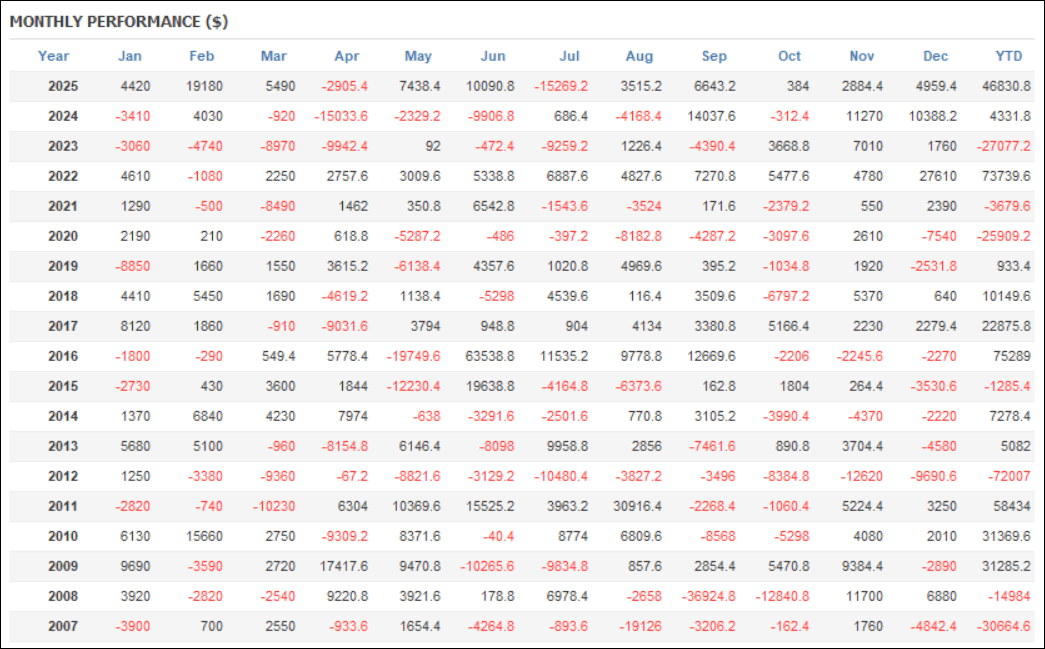 月次分析を見ると、2025年は今のところプラス成績で、2024年、2023年もトータルでプラスです。