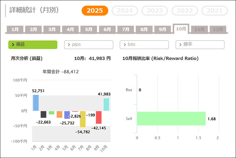 月次分析を見ると、2023年はマイナスが多く、2022年はプラス成績が多かったです。