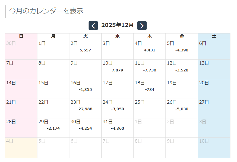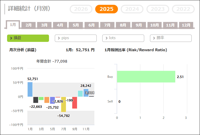 | 平均損失 | -4,667円 | 最大損失 | -33,652円 |