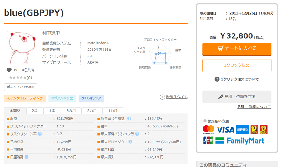 blue(GBPJPY)はGBPJPY専用のトレンドフォローEAですが、成績はどうなのでしょうか。